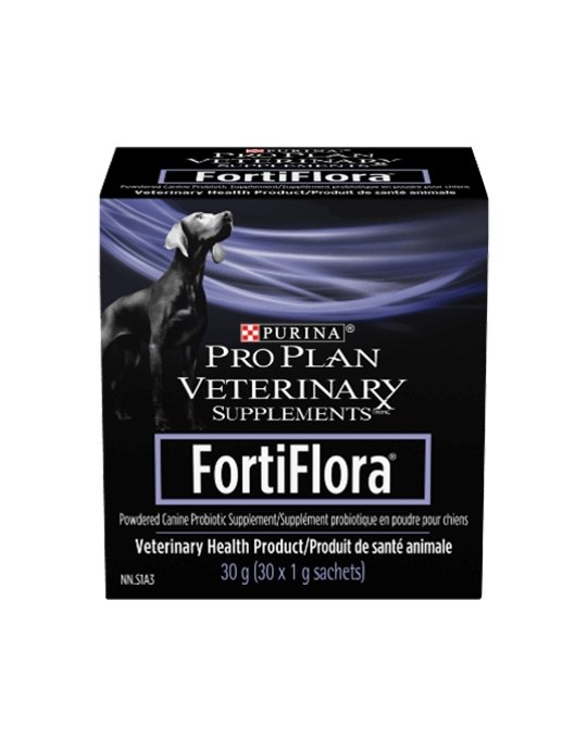 Le supplément probiotique pour chiens Purina Pro Plan Veterinary Supplements FortiFlora contient une souche sûre et efficace de bactéries bénéfiques éprouvées pour favoriser une microflore intestinale normale.