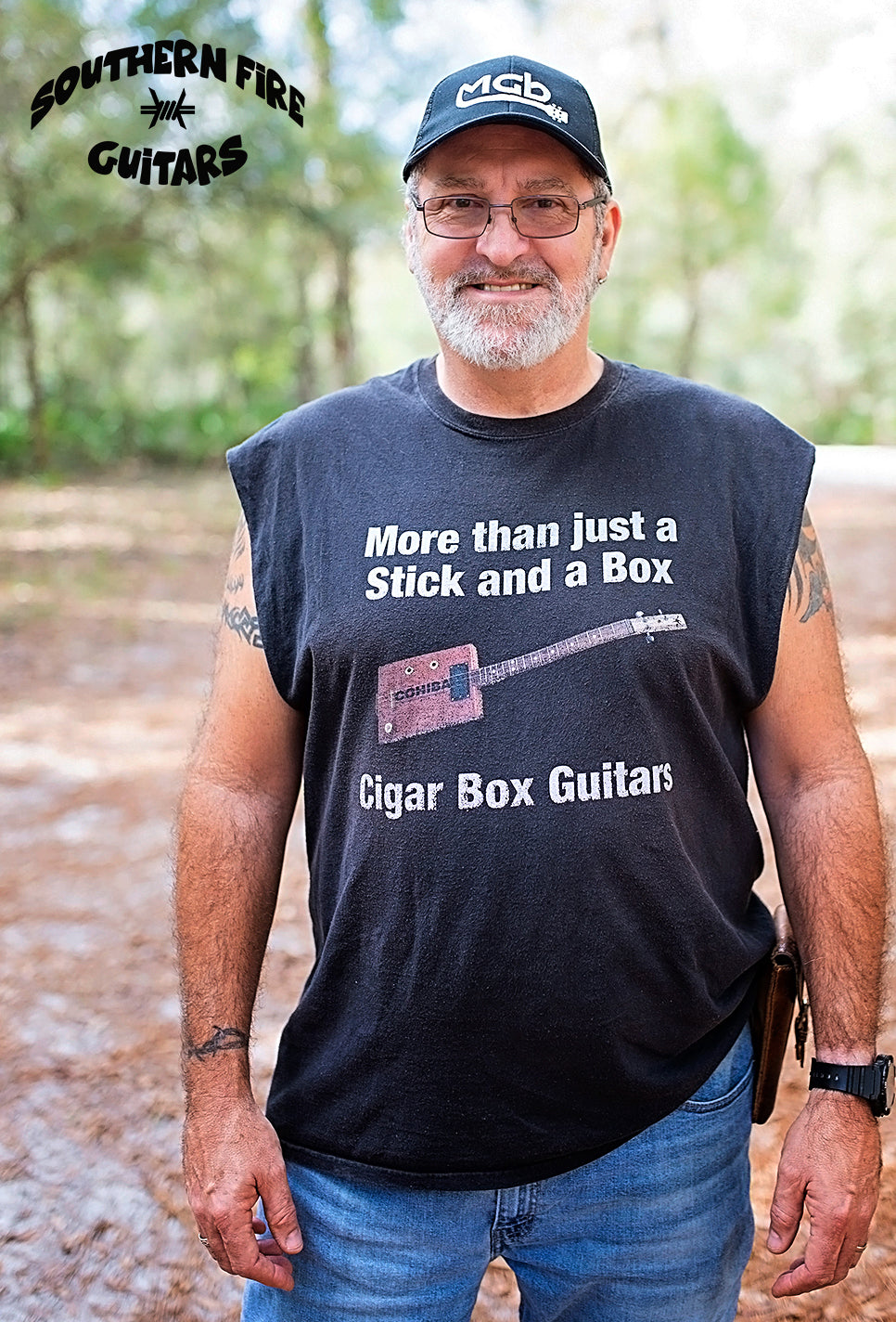 The inside of the box is dark navy