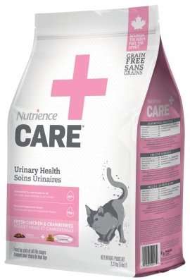 L’aliment Nutrience CareMD Soins urinaires est une formulation complète et équilibrée conçue pour aider à maintenir les voies urinaires en santé. Avec son mélange de poulet frais, de canneberges, de protéines végétales, ainsi que ses taux de minéraux méticuleusement testés, cette formulation permet de contrôler le pH urinaire afin de créer un environnement défavorable à la formation des cristaux pour aider à prévenir les problèmes urinaires. En plus de prendre les besoins particuliers de votre chat à coeur, nous avons tout fait pour nous assurer que cette formulation soit faite d’ingrédients de qualité supérieure sains, nutritifs et exempts de gluten.
