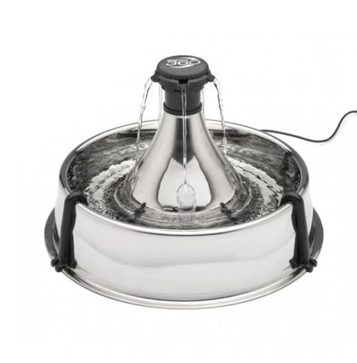 Un filtre à charbon élimine les mauvaises odeurs et les goûts désagréables, pour que votre animal puisse s'hydrater le mieux possible. Les différents jets d'eau de la fontaine et son design circulaire permettent aux animaux de boire de n'importe quel côté et sont particulièrement adaptés aux foyers ayant plusieurs animaux. Quant à l'acier inoxydable, il s'agit du matériau le plus recommandé par les vétérinaires, pour des gamelles les plus hygiéniques possible.